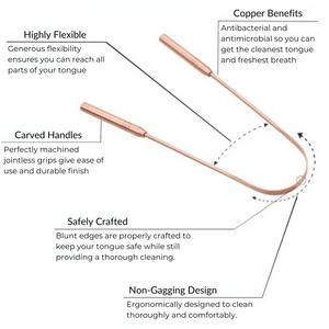 A copper tongue cleaner is the natural way to get rid of bad breath and toxins from the surface of the tongue.