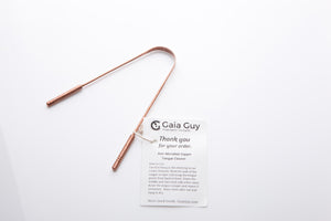 - Gaia Guy's tongue cleaner is made with antimicrobial copper. It was this metal that was recommenced by the ancient Sanskrit text, Charaka Samhita, as the best way to remove toxins and bacteria from the tongue. Say good-bye to halitosis and get your self-esteem back.