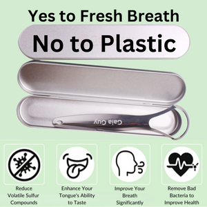 Introducing the Gaia Guy's Stainless Steel Tongue Scraper, your gateway to a breathtakingly fresh and confidently clean mouth. This innovative tool tackles bad breath at its source, effectively removing the bacteria and toxins that lurk on your tongue.