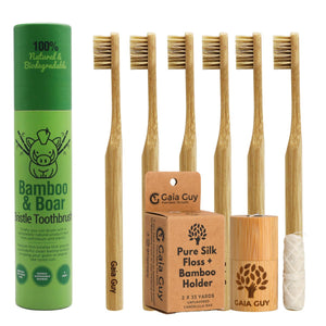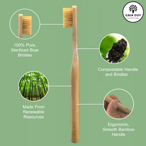 3. Natural Boar Hair Bamboo Toothbrush: Gaia Guy proudly introduces an entirely earth-friendly toothbrush crafted from natural boar bristles and a bamboo handle. This toothbrush embodies your commitment to a planet-based lifestyle, providing a truly renewable resource option. Start and end your day feeling connected to nature, knowing that your dental care routine reflects your dedication to a sustainable future.