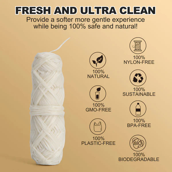 Natural Silk Dental Floss Kit: Gaia Guy presents a natural unflavored silk dental floss kit that includes floss refill and a reusable bamboo holder. Our 100% biodegradable and compostable floss is the perfect choice for eco-conscious individuals seeking plastic-free and nylon-free flossing alternatives. Experience a sustainable and gentle dental routine while minimizing your environmental impact.
