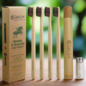 Bamboo and Horsehair Toothbrushes w/ Silk Floss and Bamboo Travel Case