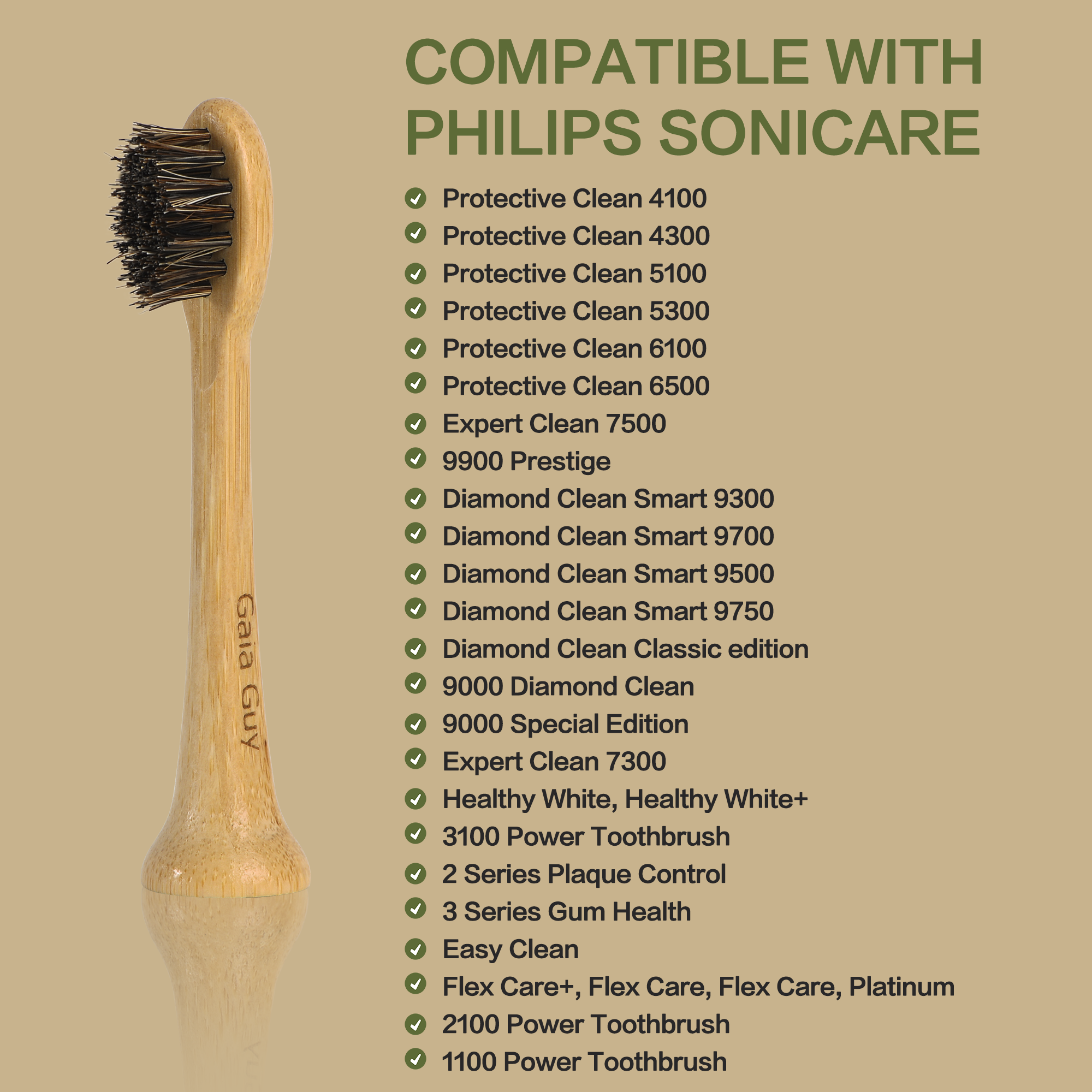 Go plastic-free with your Sonicare routine with Gaia Guy’s Bamboo & Horsehair Electric Toothbrush Heads — the world’s first truly sustainable alternative to plastic brush heads. Made with biodegradable bamboo and natural horsehair bristles, they deliver a gentle yet effective clean while protecting the planet.