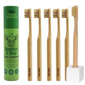 Sustainable Materials: Our toothbrushes are made from renewable bamboo, ensuring minimal environmental impact. Boar bristles offer a biodegradable alternative to traditional plastic bristles, further reducing waste.
