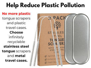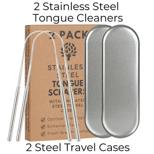 Stainless Steel Tongue Scraper with Metal Case - 2 Pack - Plastic Free Tongue Cleaners