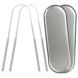 Say goodbye to bad breath and hello to a healthier mouth with our Stainless Steel Tongue Scraper with Metal Case! This essential tool is designed to enhance your oral hygiene by effectively scraping away the buildup on your tongue, promoting fresher breath and better taste perception. Made from durable stainless steel, it’s both safe and easy to clean, providing a sustainable alternative to plastic tongue cleaners. Each 2-pack comes with a stylish metal case, perfect for storing your scrapers safely and hygienically. Whether you're at home or traveling, this compact design allows you to maintain your oral care routine effortlessly. Experience the difference in your breath and enjoy the confidence of a cleaner, healthier mouth every day.